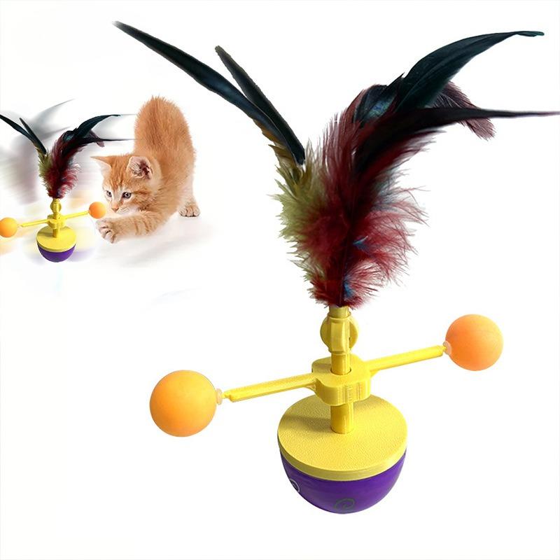 Cat Toys Interactive Cat Carousel Toy with Feather & Ball-Tumbler Teaser Wand for Kittens, Self-Rolling Relaxation Cat Play Toy