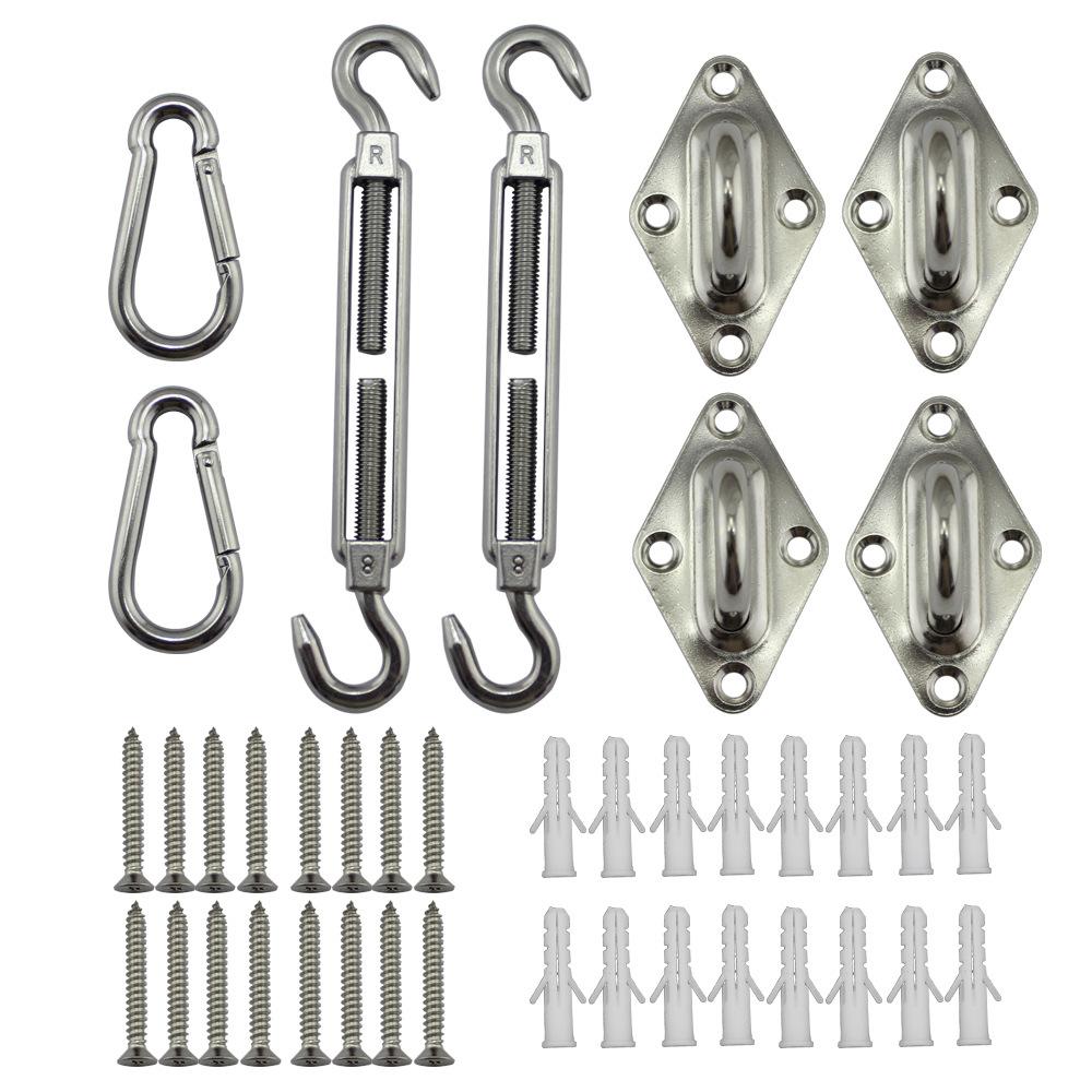 40pcs Sun Shade Sail Canopy Hardware Kit 304 Stainless Steel Turnbuckle Pad Eye Carabiner Clip Hook Screws Silver