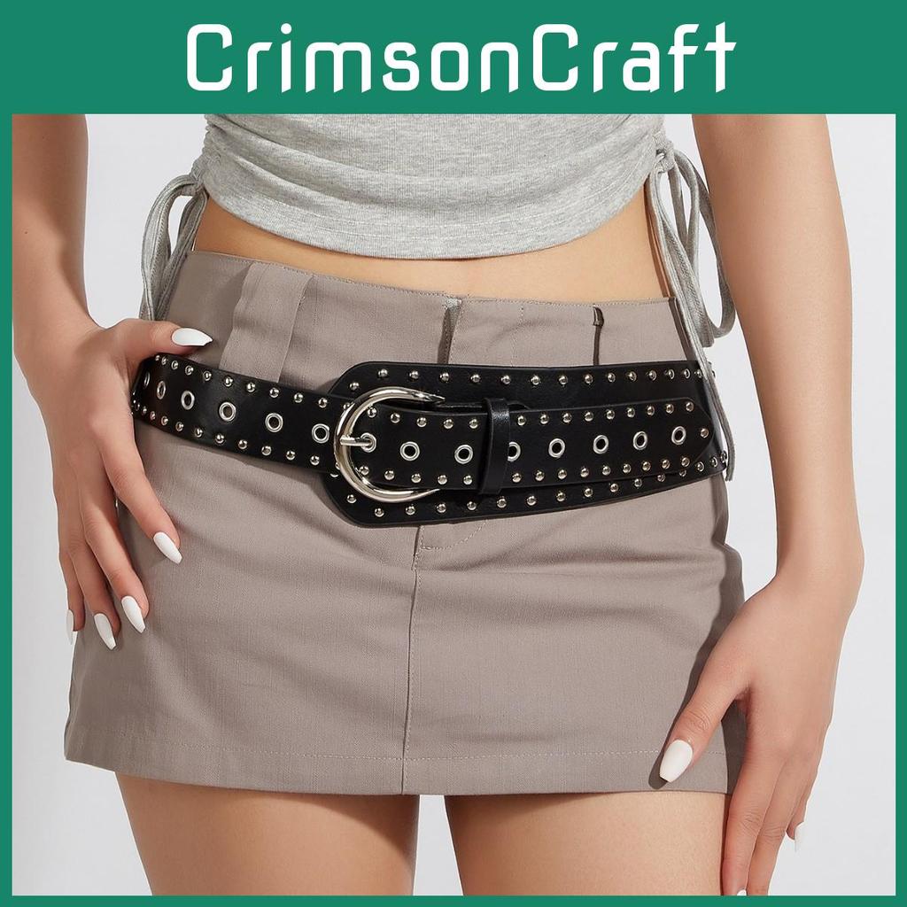 This punk-inspired belt features a faux leather strap with metal nailhead accents, measuring 3.8cm wide and 103cm long. The alloy buckle with a pin closure ensures secure fastening. Perfect for casual or streetwear looks, it complements various outfits. Wipe clean with a damp cloth for maintenance.