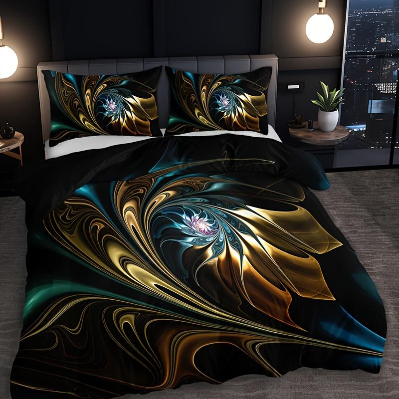 3Pcs Modern Abstract Marble Design Bedding Set, Polyester, Breathable All-Season Duvet Cover With 2 Pillowcases (No Insert)