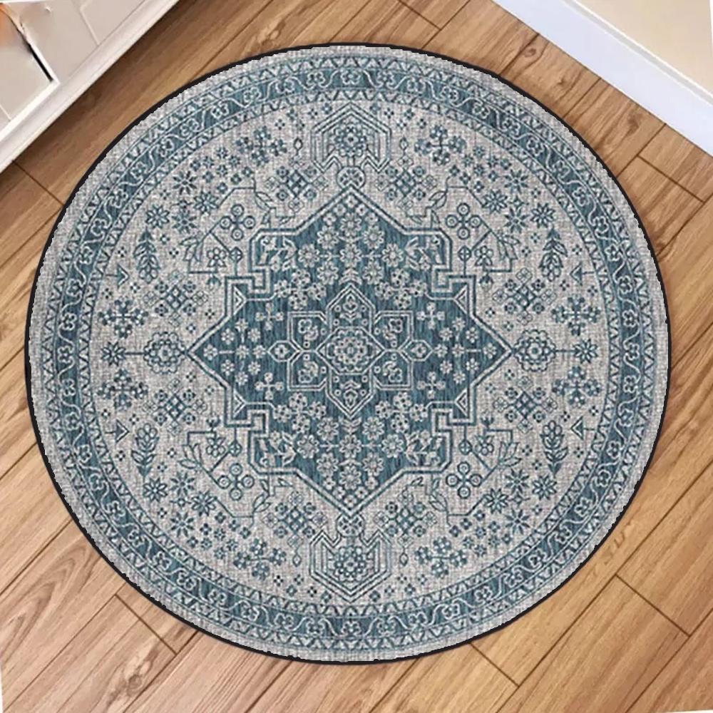 Vintage Ethnic Pattern Round Rug Elegant Floral Geometric Scroll Designs Soft NonSlip Carpet For Living Room Bedroom
