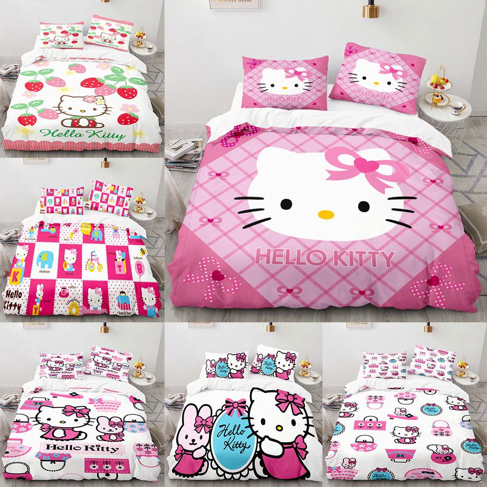 Sanrio Bedding Set Duvet Cover Hello Kitty Children'S Bedroom Decoration Quilt Cover Pillowcases Single Double Multiple Sizes