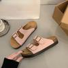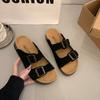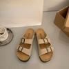 New Retro One-line Casual Beach Shoes for Women with Thick Soles and Soft Leather Slippers