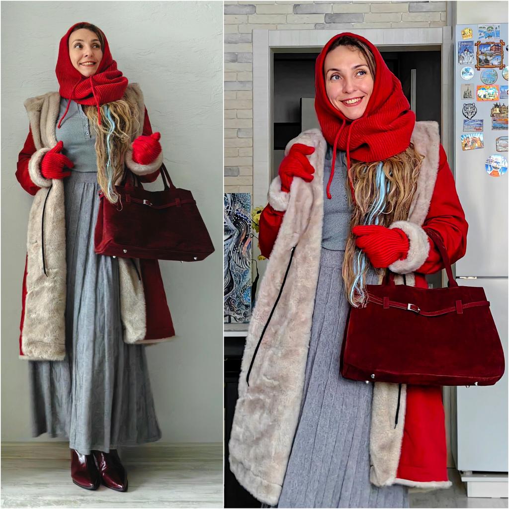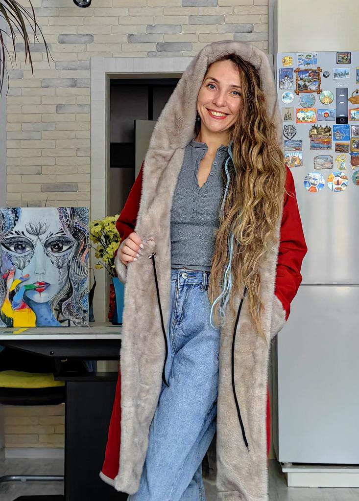 Winter Thickened Detachable Faux Mink Collar Rabbit Fur Lining Mid Long Parka Coat Women