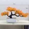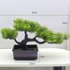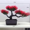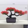 This indoor desktop bonsai features a realistic imitation pine tree crafted from durable plastic with injection molding. it offers a vibrant green, red, or champagne color to enhance home or office decor. Designed for tabletop display, it resists fading and requires only occasional wiping with a damp cloth for maintenance.