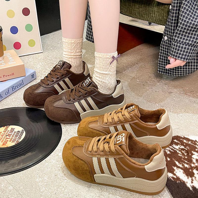 First Layer Cowhide Shoes Children's Versatile Platform Casual Sports Shoes Winter New Velvet Thickened Warm Cotton Shoes