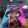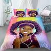 American Black Girl Duvet Cover Set,Black Girl Magic Bedding Set Full Size,Cute Little Afro Black Princess Comforter Cover Sets