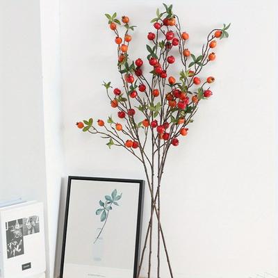 3 Pcs Artificial Pomegranate Branches Stem Plastic Fake Greenery Plants for Home Decor Office Restaurant Wedding Garden Patio Shop Window Room Decor