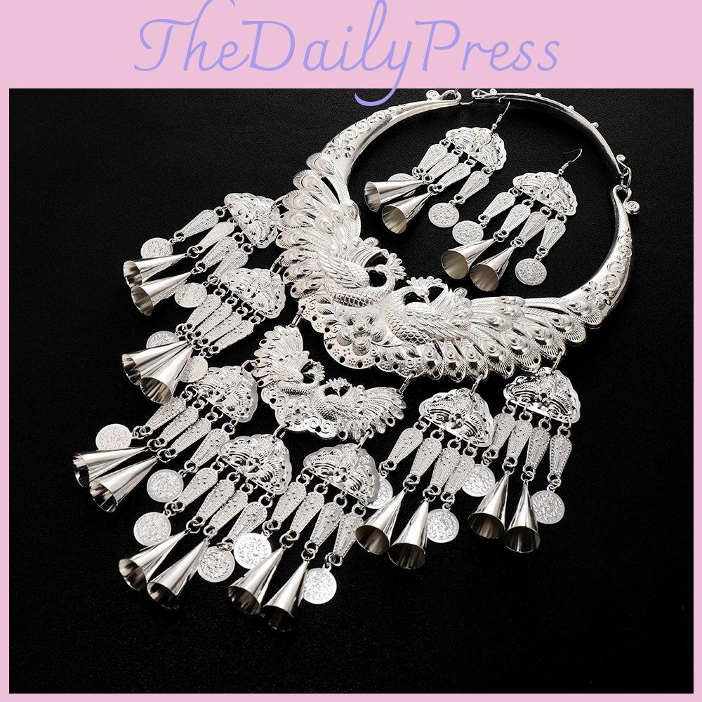 Statement Peacock Pendant Chain With Silver Coating For Vintage Fashion Accessories