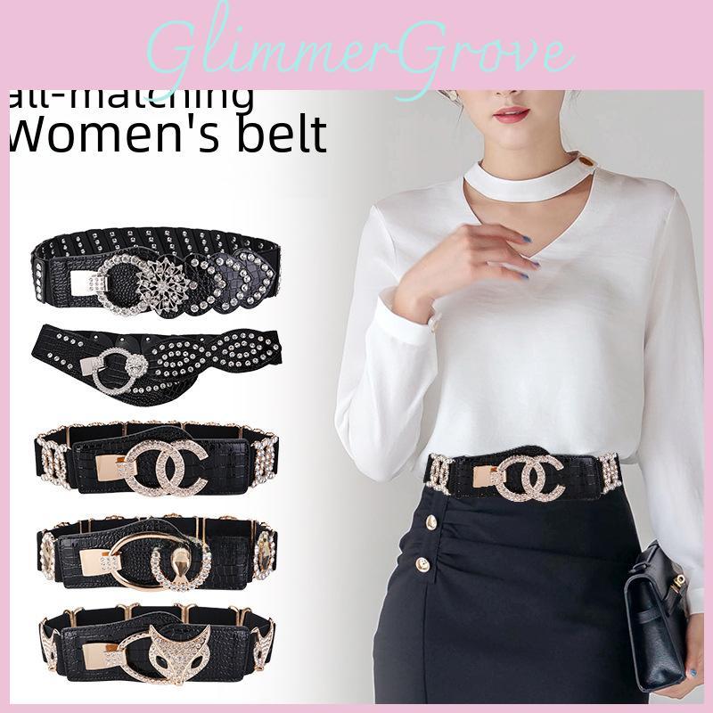 Elegant Womens Elastic Waist Belt With Crystals And Alloy Buckle For Office And Casual Looks