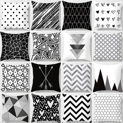 Black and White Geometric Polyester Soft Cushion Throw Pillow, Living Room Car Decoration, Sofa Bed Decoration, Pillowcase 40525