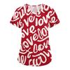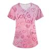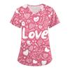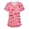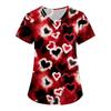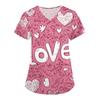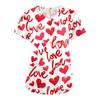 Women's Valentine's Day Print Loose V-neck Pocket Short-sleeved Caregiver Uniform/ Uniform