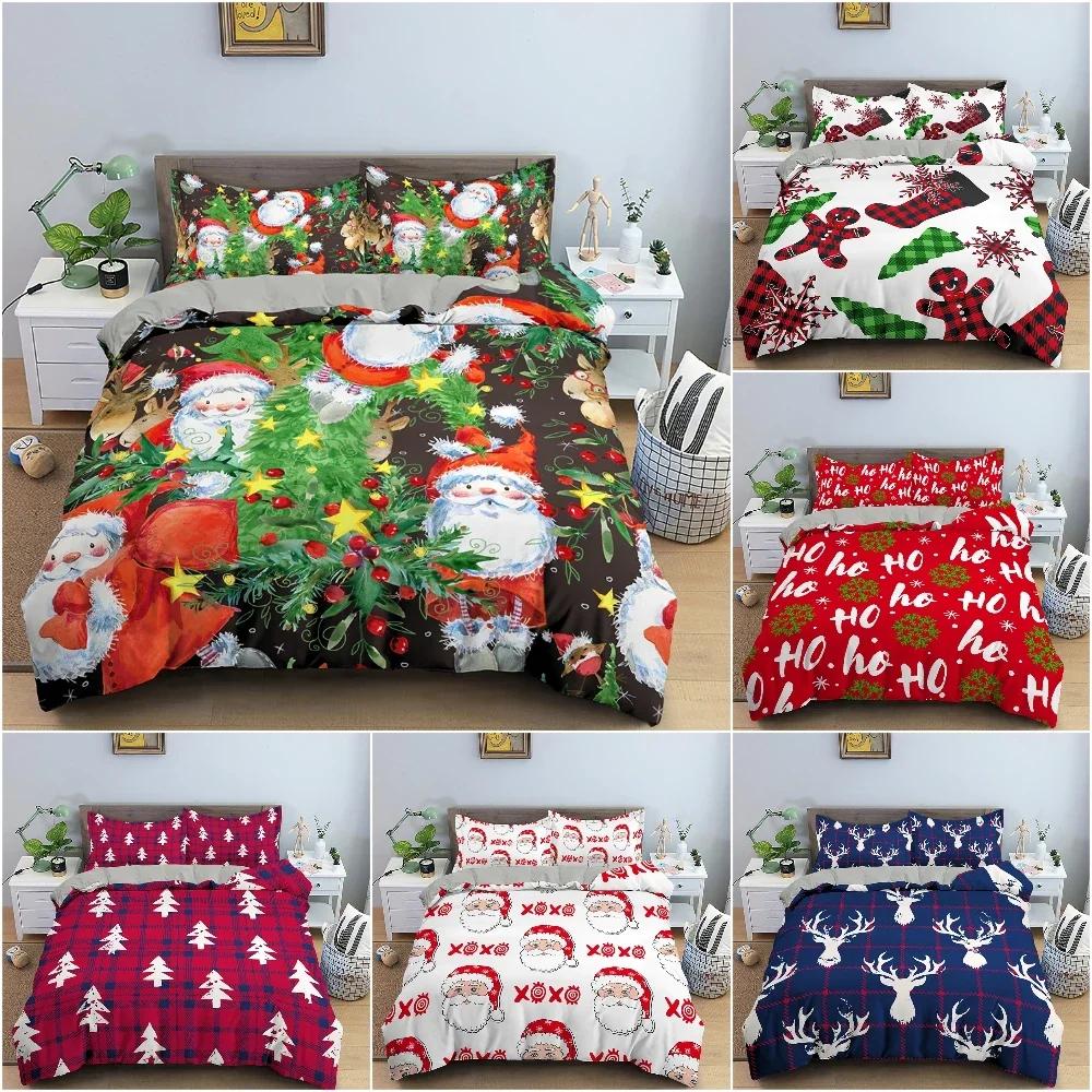 Christmas Decoration Bedding Set Luxury Soft Duvet Cover Set 3D Christmas Printed Quilt Cover King Queen Twin Size Home Textile
