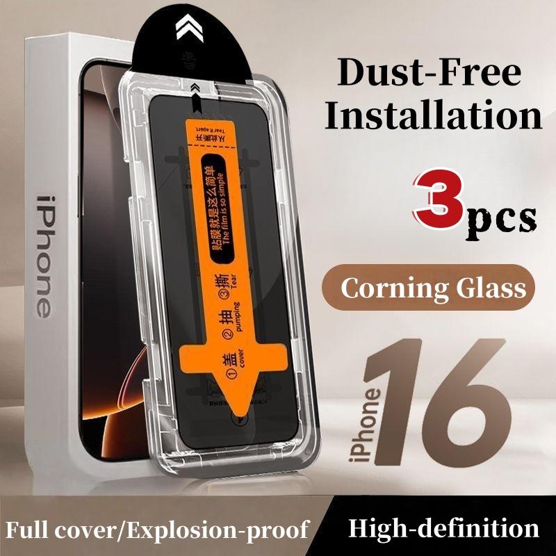 3pcs Anti-peep Dust Free Installation Screen Protector For iPhone17 11 12 13 15ProMax 14Pro 16 HD Tempered Glass Screen Protector