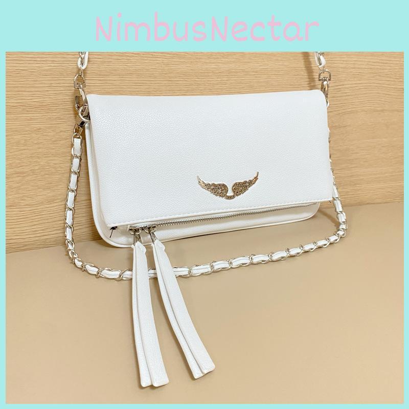 Color Solid Simple Gold Wing Decoration Women Casual Shoulder Bag Tassels With
