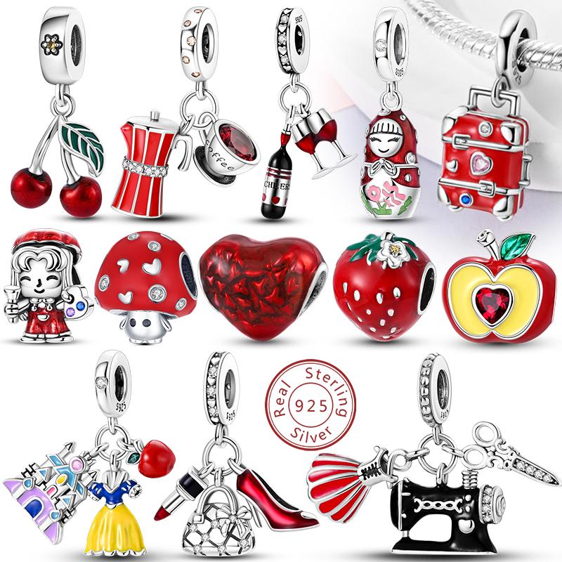 Red Series Charms Beads Pendan Copper Suitcase Red Wine High Heels Cherry Charm Fit Original Bracelet Woman Jewelry