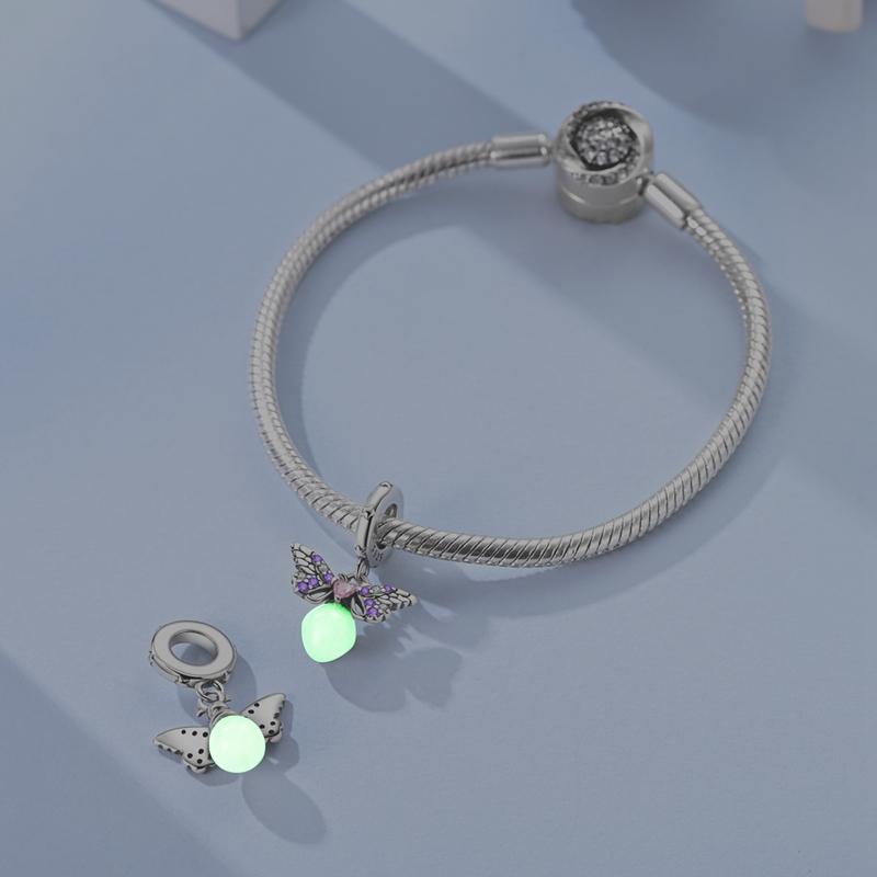 Copper Luminous Firefly Charms Beads Lovely Blue Shark Pendant Fit Original Bracelet Diy Women Jewelry Gift