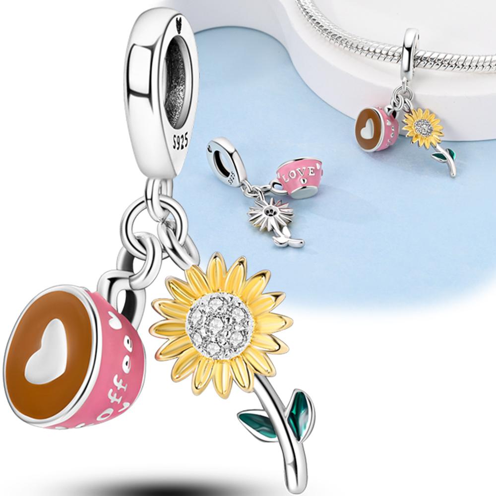 Original Charms Copper Creative Coffee Sunflower Pendants Fit Charms Plata Bracelets For Women Jewelry Making Fine Gifts