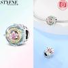 Copper Flower With Various Shapes Sparkling Zircon Sunflower Charms Beads Fit Original Bracelets Diy Jewelry
