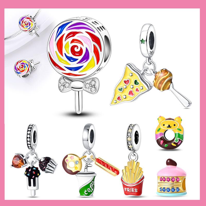 Copper Chocolate Lollipop Macaron Gourmet Charm Pendant Beads Fit Charm Original Bracelet For Women Jewelry Making
