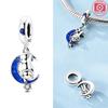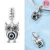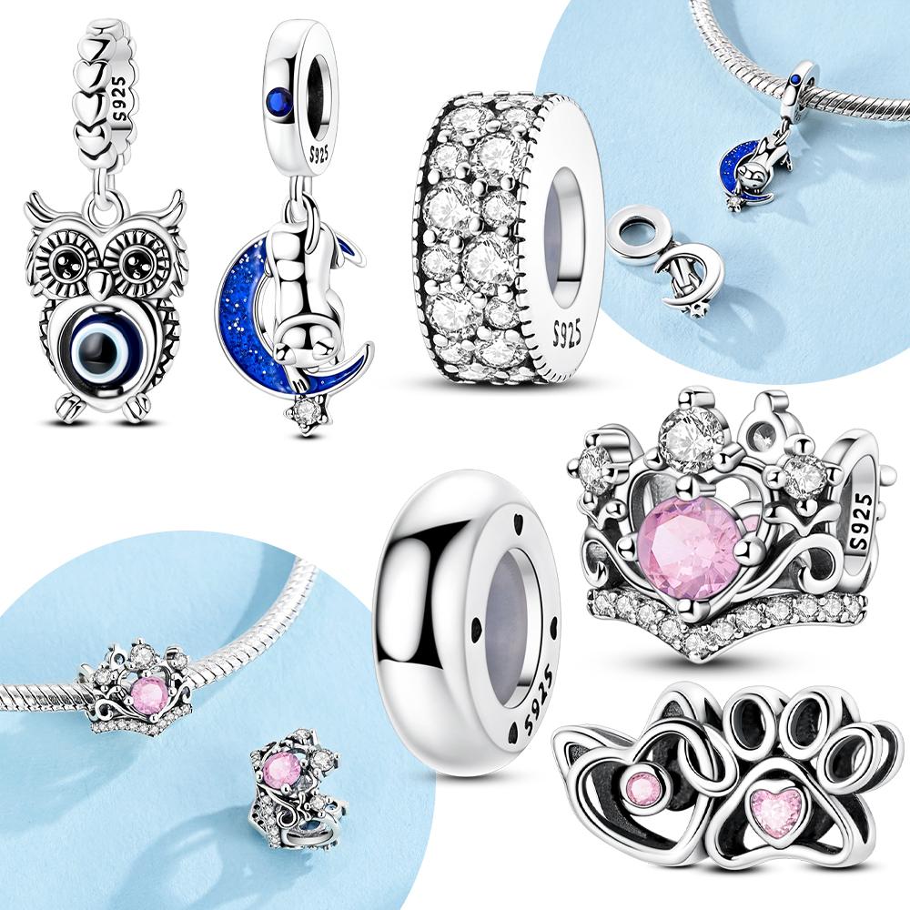 Original Copper Charm Pink Zircon Crown Clawed Owl Moon Pendant Bead Fit Bracelet Women Jewelry Fine Gift Accessory