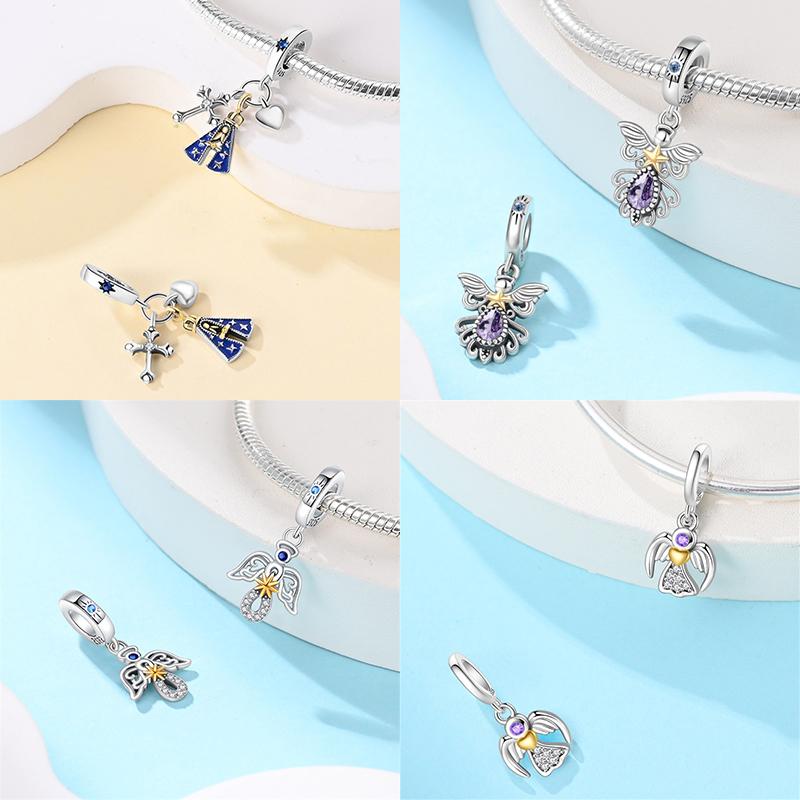 Charms Angel Series Sparkling Zircon Wings Beads Pendant Fit Diy Original Bracelet Necklace Copper Women Jewelry Gifts