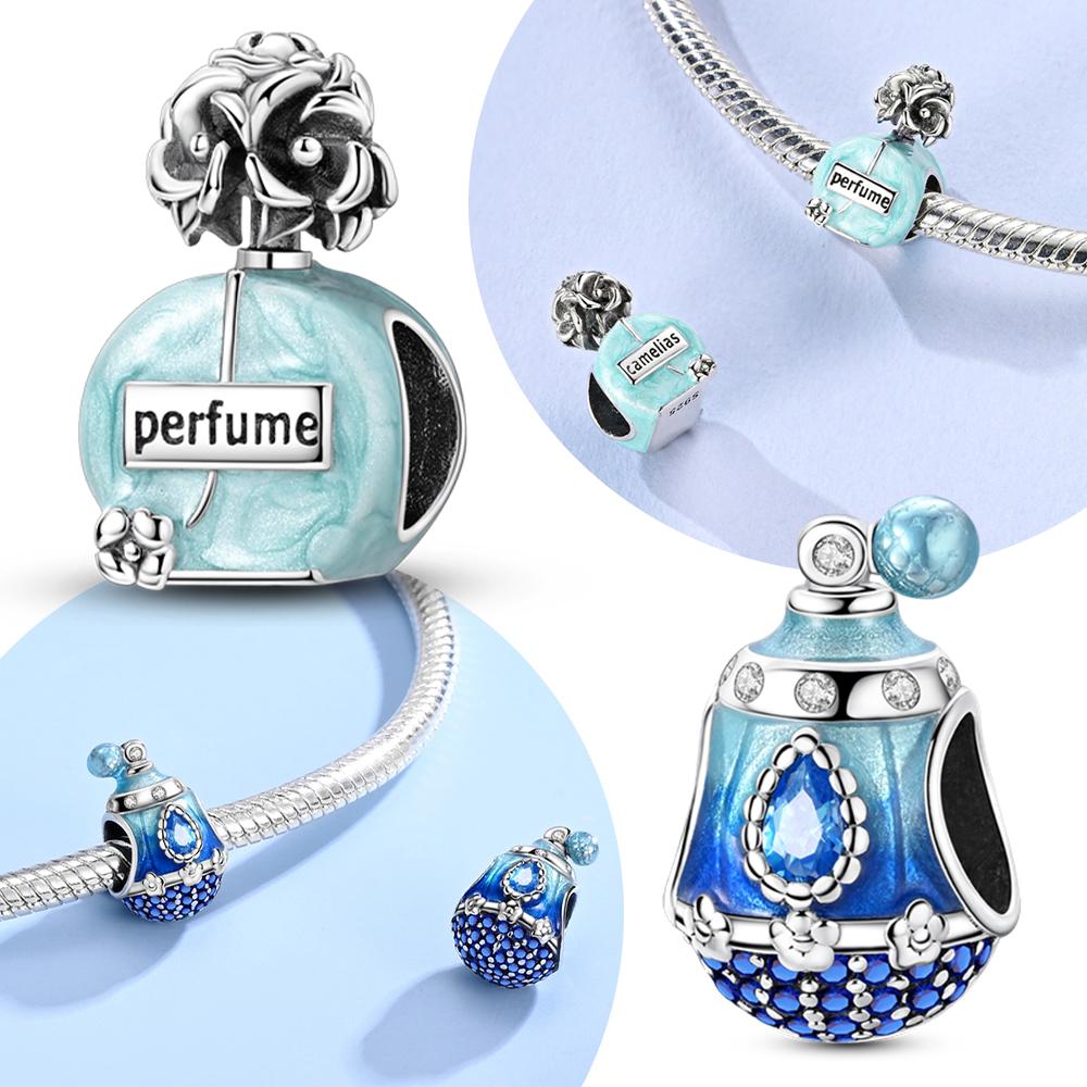 Delicate Charms Copper Original Blue Perfume Bottle Zircon Flower Beads Fit Bracelet Jewelry Women Diy Fine Gift