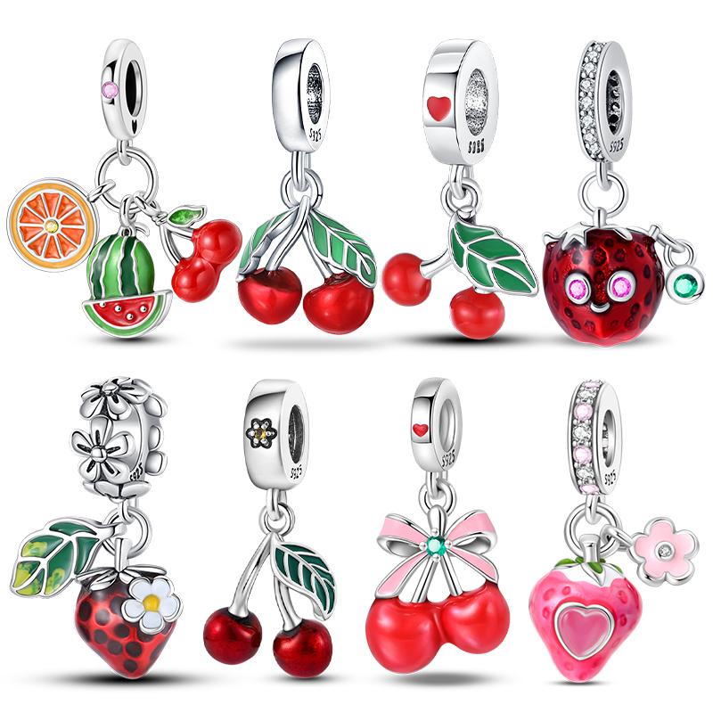 Copper Fruit Cherry Strawberry Pendant Fit Pandach Diy Bracelets Charm Beads Anniversary Birthday Gifts Luxury Fine Jewelry