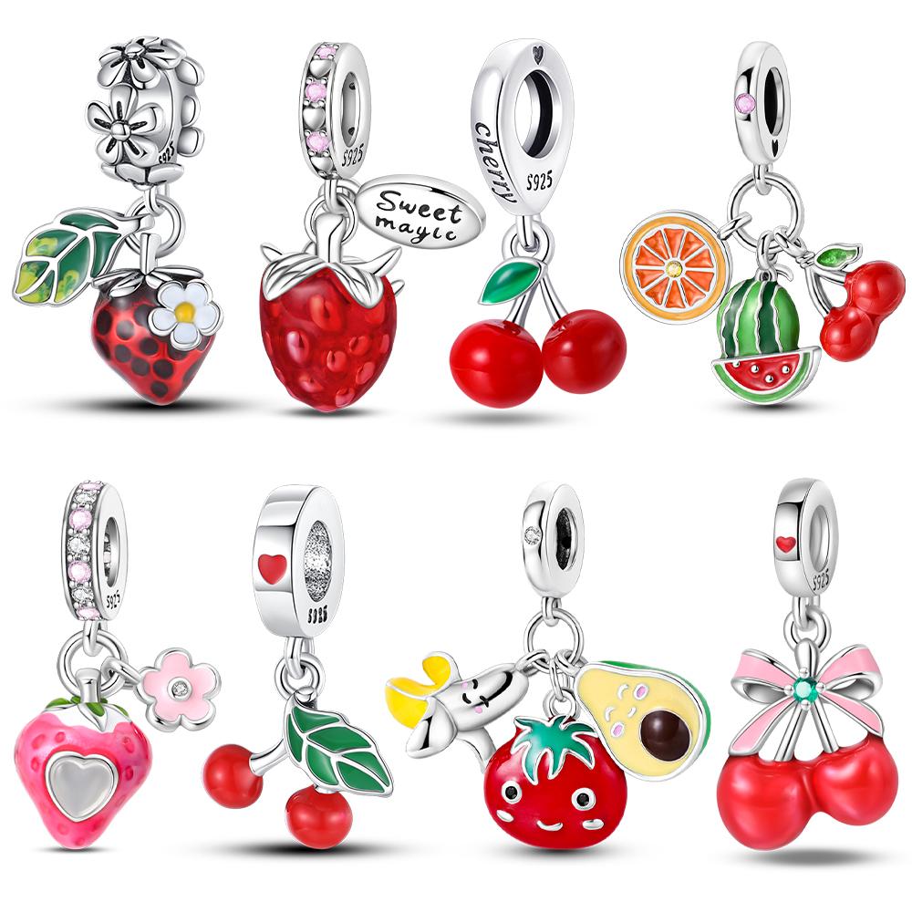 Exquisite Original Copper Strawberry Cherry Apple Avocado Fruit Charms Bead Fit Diy Bracelet Birthday Jewelry Fine Gift
