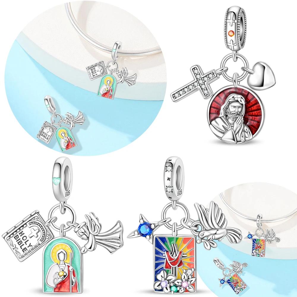 Colored Pendant Cross Dove Original Copper Heart Angel Blue Zircon Beads Fit Bracelet Jewelry Fine Day Gift Women Accessory