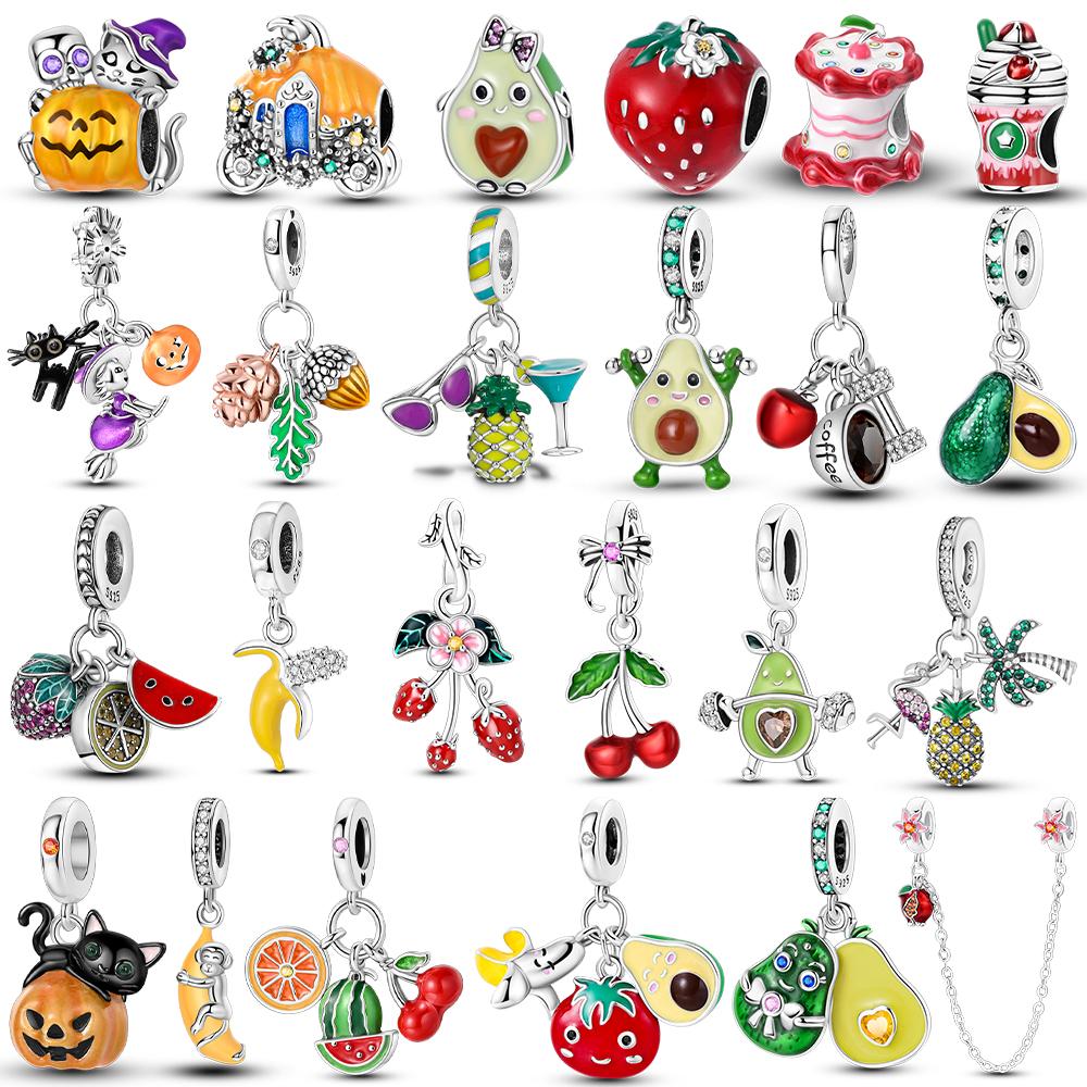 Copper Cherry Strawberry Avocado Fruit Original Charms Beads Fit Charms Pendant For Woman Jewelry Making Fine Gift