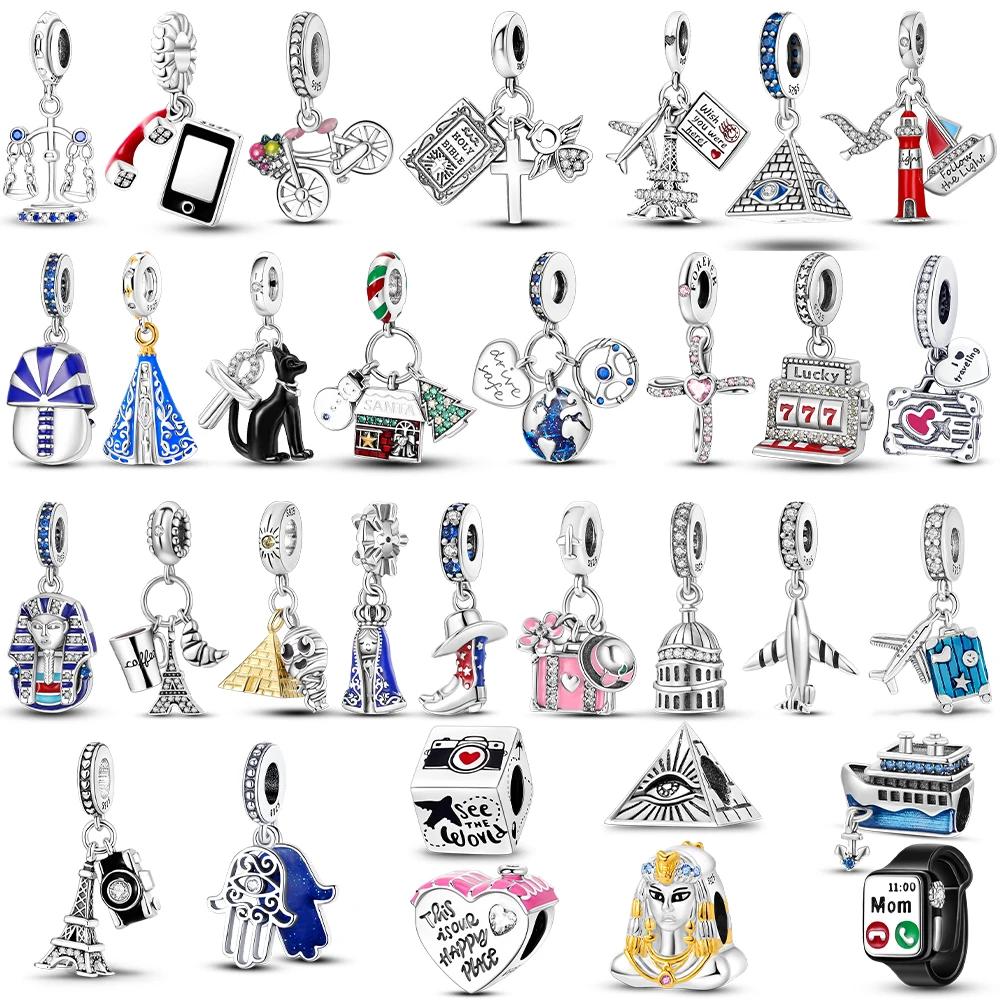 Charm Original Copper Paris Tower Pyramid Travel Country Flag Fit Bracelet Necklace Beads Pendant Women Diy Jewelry Gift