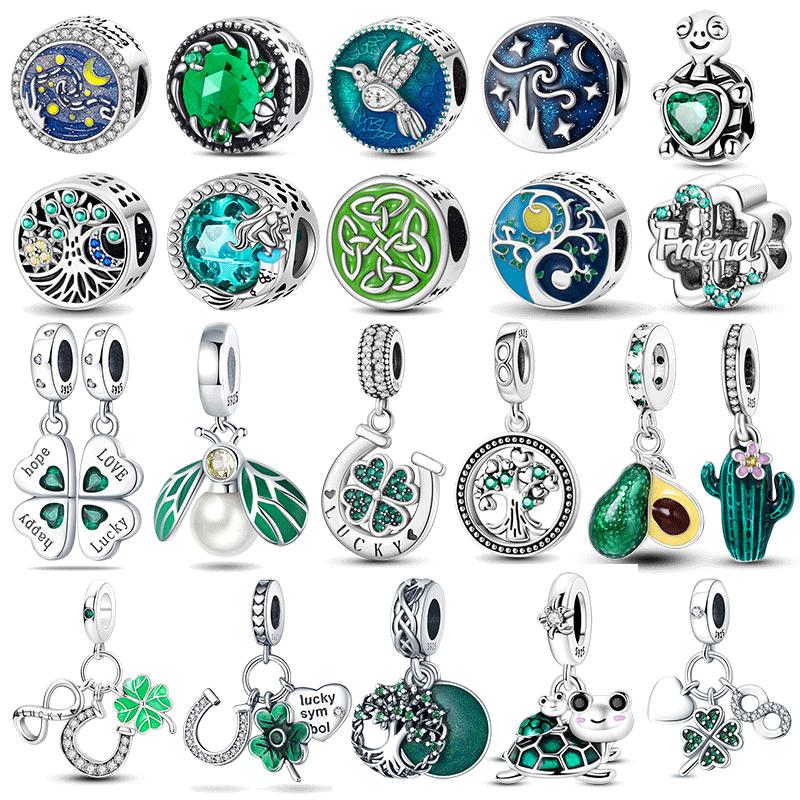Copper Green Series Four Leaf Clover Lucky Butterfly Pendant Fit Original Bracelet Charm Beads Diy Jewelry