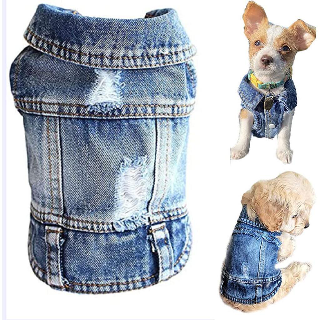 Denim Vest Jacket T-Shirt Cute Puppy Clothes, Comfortable Cool Clothing For Small Dogs