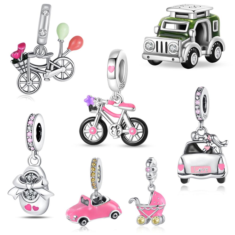 Copper Adventure Car Beads Spinning Wheels Bicycle Dangle Charm Fits Brand Bracelet Diy Jewelry Necklace Pendant
