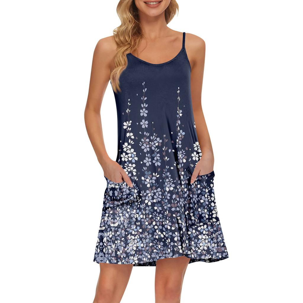 Women's Summer Casual Straps Sundress With Pockets Short Beach Vacation Tank Dresses
