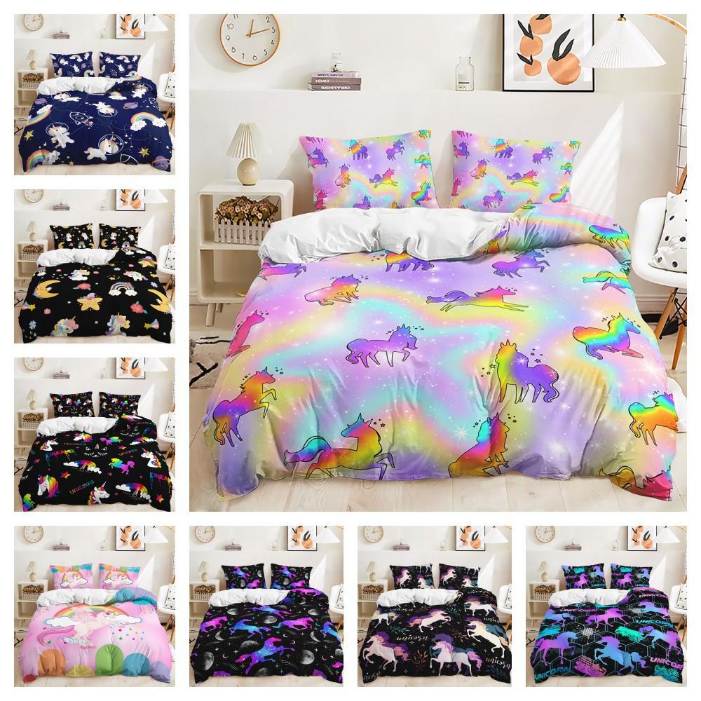 Quilt Cover Three-Piece Set Animal Illustration Unicorn Digital Printing Children'S Two-Piece Set