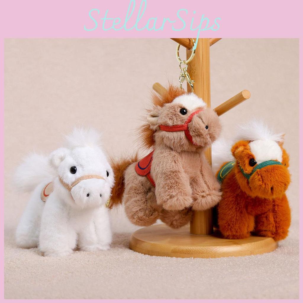 This plush cloud horse charm measures approximately 14cm and features soft, short-pile plush fabric filled with lightweight PP cotton, providing a cuddly texture. Crafted for girls' bags, it offers a decorative accent with detailed animal design in white, khaki, or brown. Ideal for personalizing accessories or as a cute gift. Wipe clean with a damp cloth for maintenance.