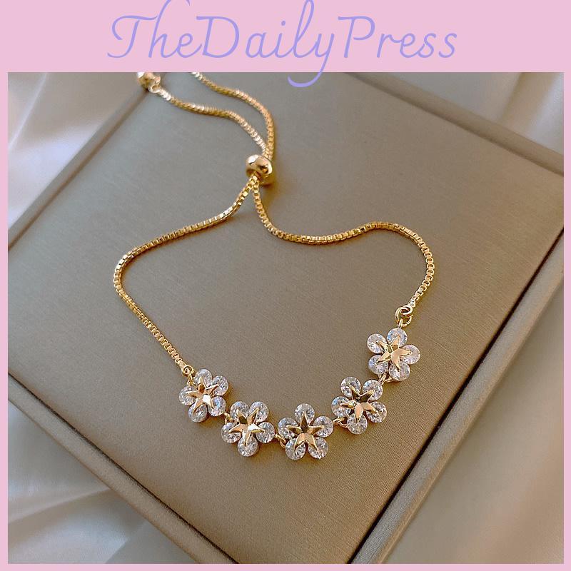 This flower-shaped hand chain features an electroplated finish, crafted from copper, alloy, and zirconia for durability and shine.it offers a lightweight, comfortable fit. Ideal for travel souvenirs or special occasions, it adds a delicate touch to daily or festive outfits. Wipe clean with a soft cloth to maintain its luster.