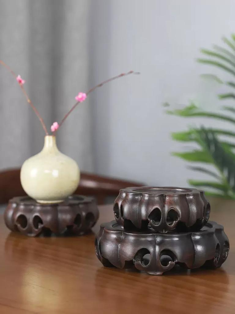 Solid Wood Circular Small Base Vase, Flower Pot, Strange Stone Tea Pot, Handicraft, Pallet, Wood Carving Decoration Ornaments