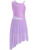 Girls Lyrical Dance Dress Sleeveless Shiny Rhinestones Flower Pattern Asymmetrical Side Slit Performance Gown