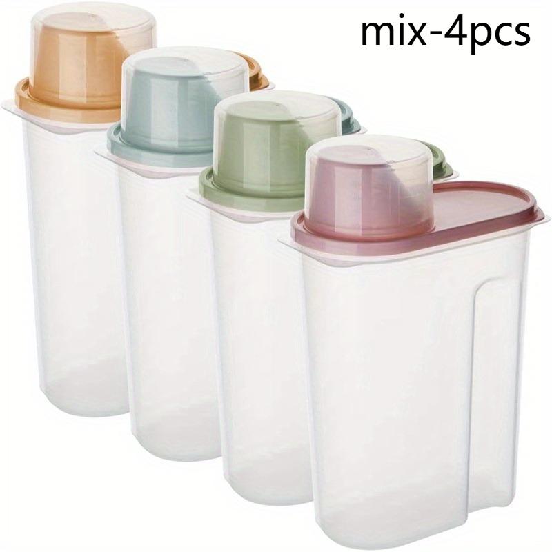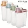 4pcs Airtight Cereal Storage Containers with Lids-Leak-Proof Plastic Food Canisters, Reusable Organizers with Measuring Cup