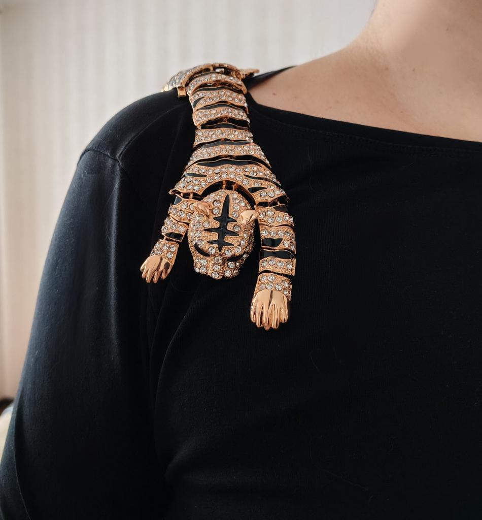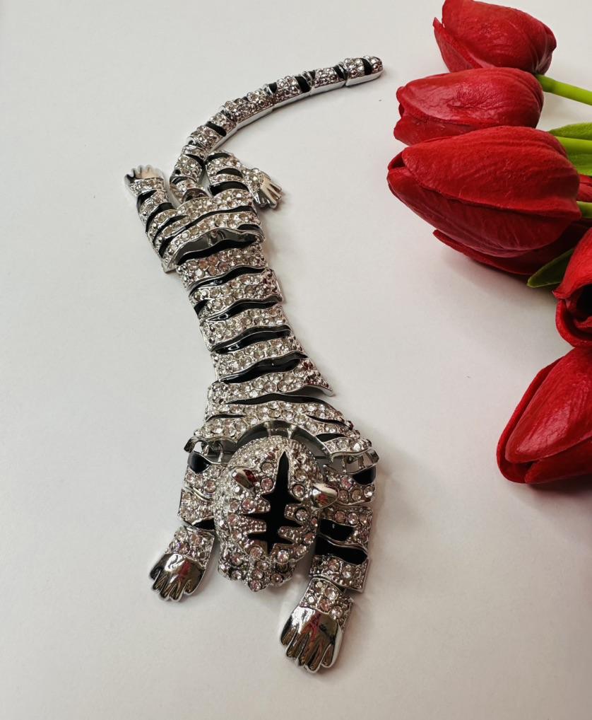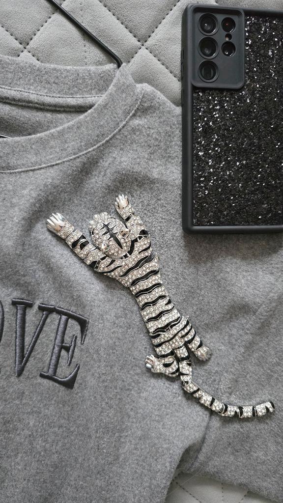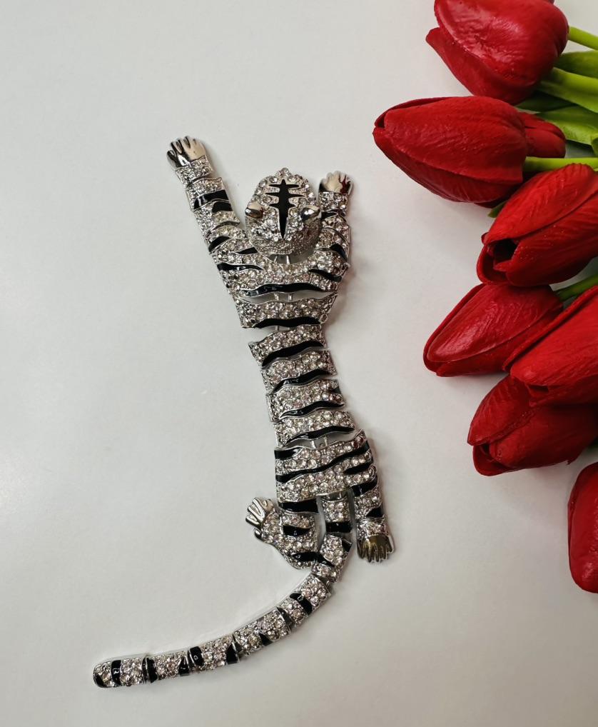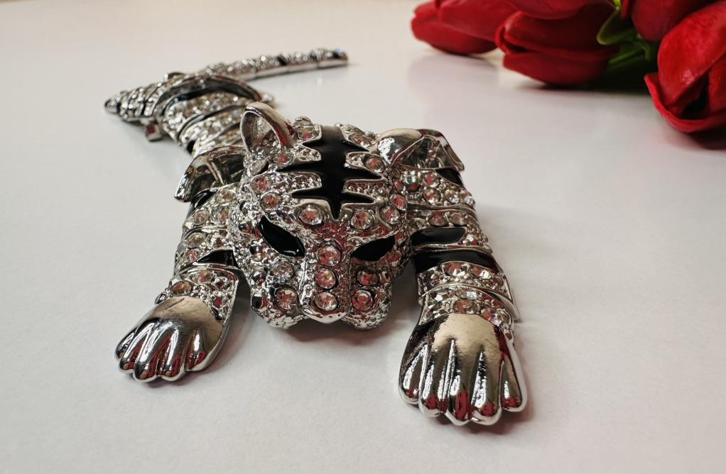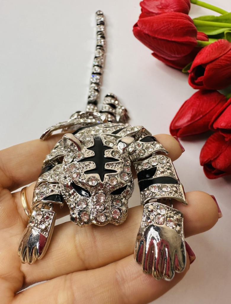 Men's Oversized Domineering Glitter Rhinestone Tiger Brooch Fashion Shawl Animal Pin Suit Women's Coat Accessories