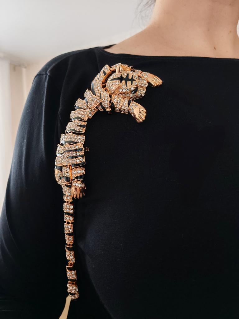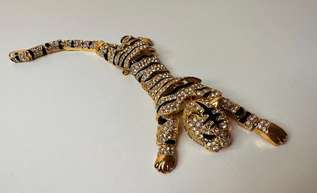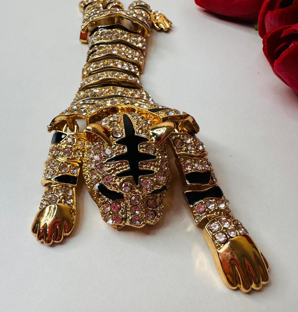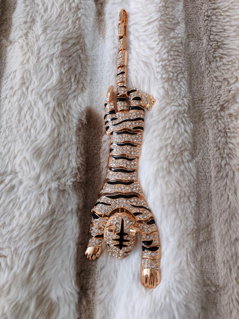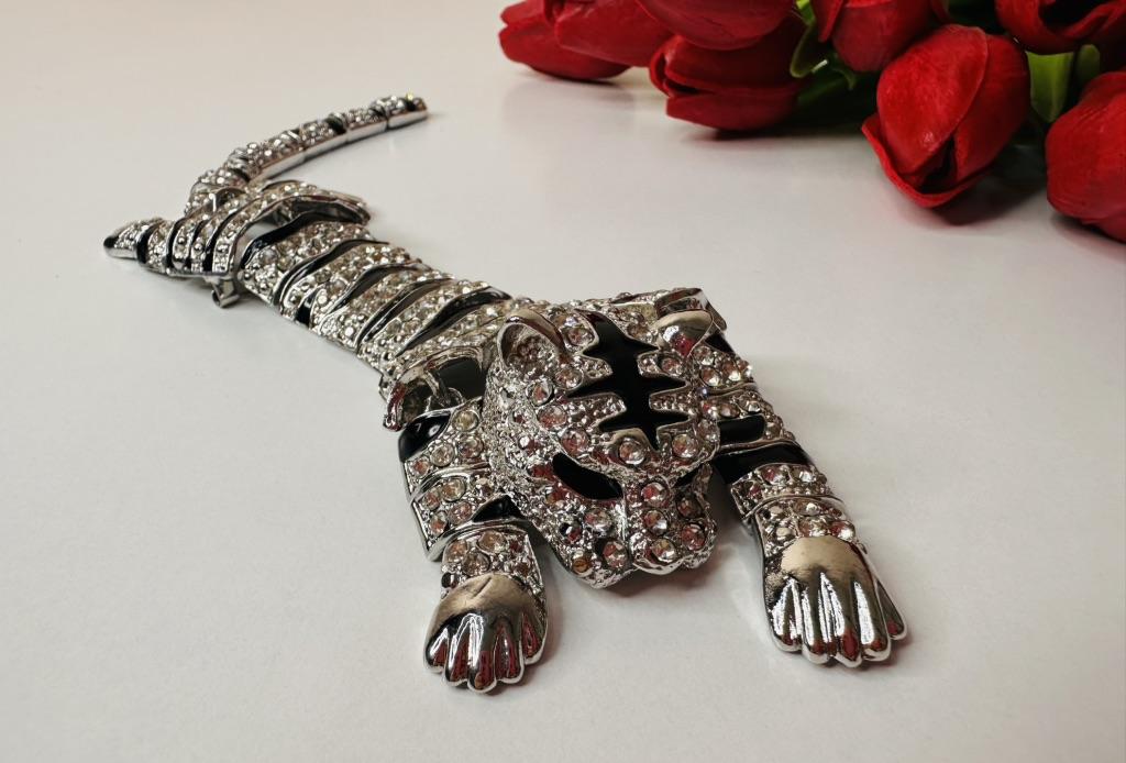 Men's Oversized Domineering Glitter Rhinestone Tiger Brooch Fashion Shawl Animal Pin Suit Women's Coat Accessories