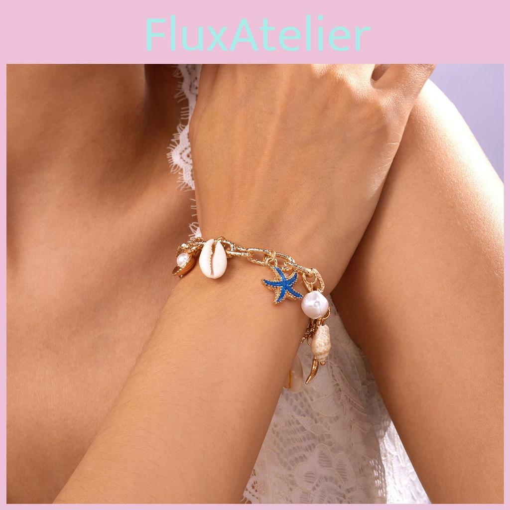 This bohemian beach jewelry set includes a shell-themed bracelet and anklet crafted from durable alloy with a sleek electroplated finish, these accessories add a stylish touch to casual summer outfits. Perfect for beach outings or casual daytime wear, they support effortless fashion expression. Clean with a soft cloth to maintain their shine.