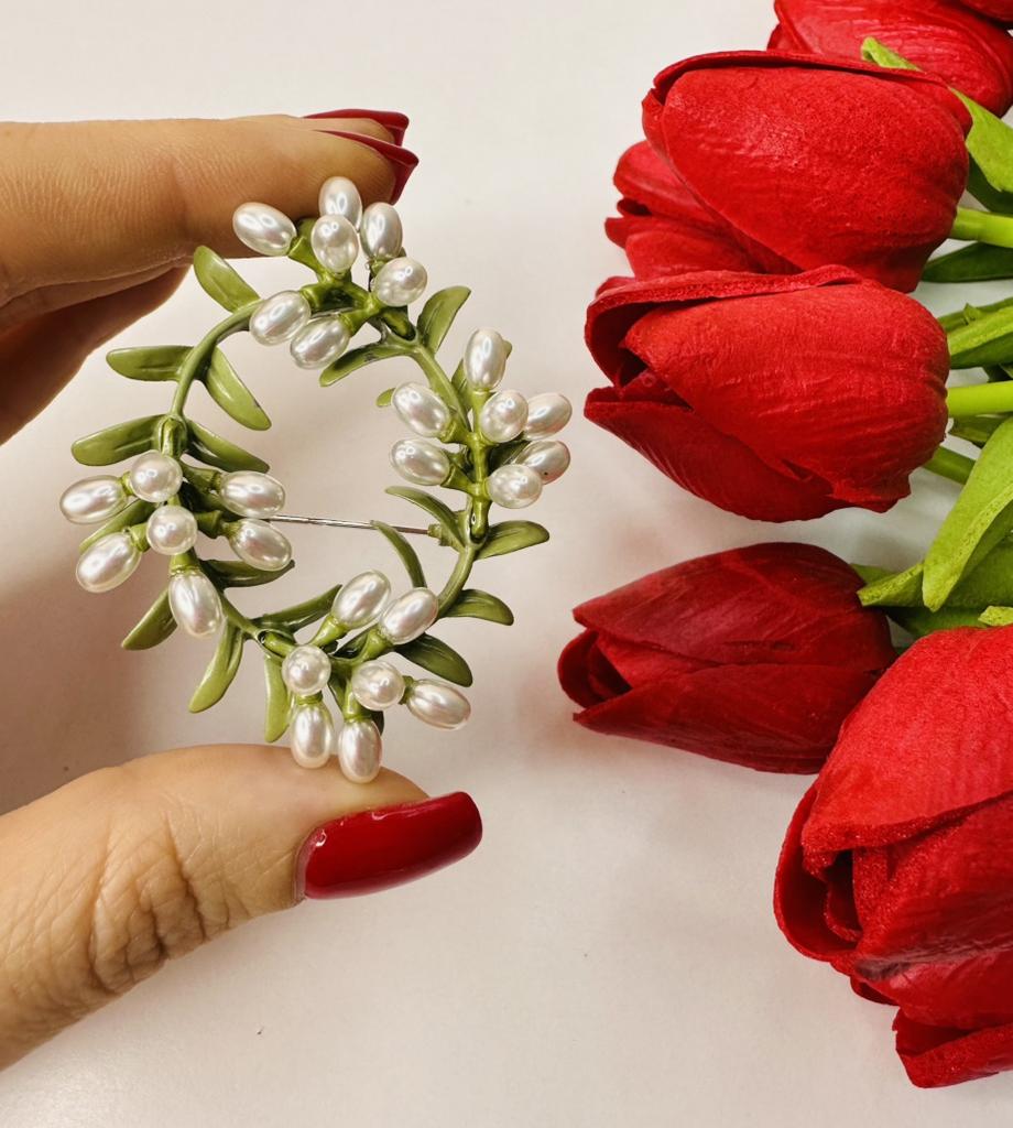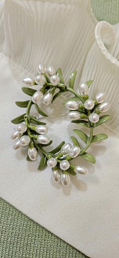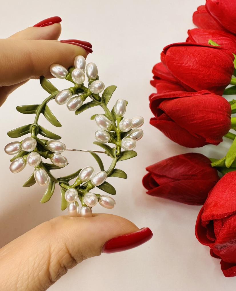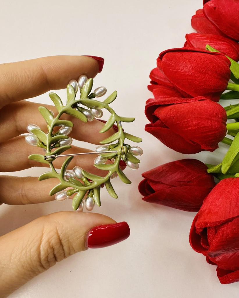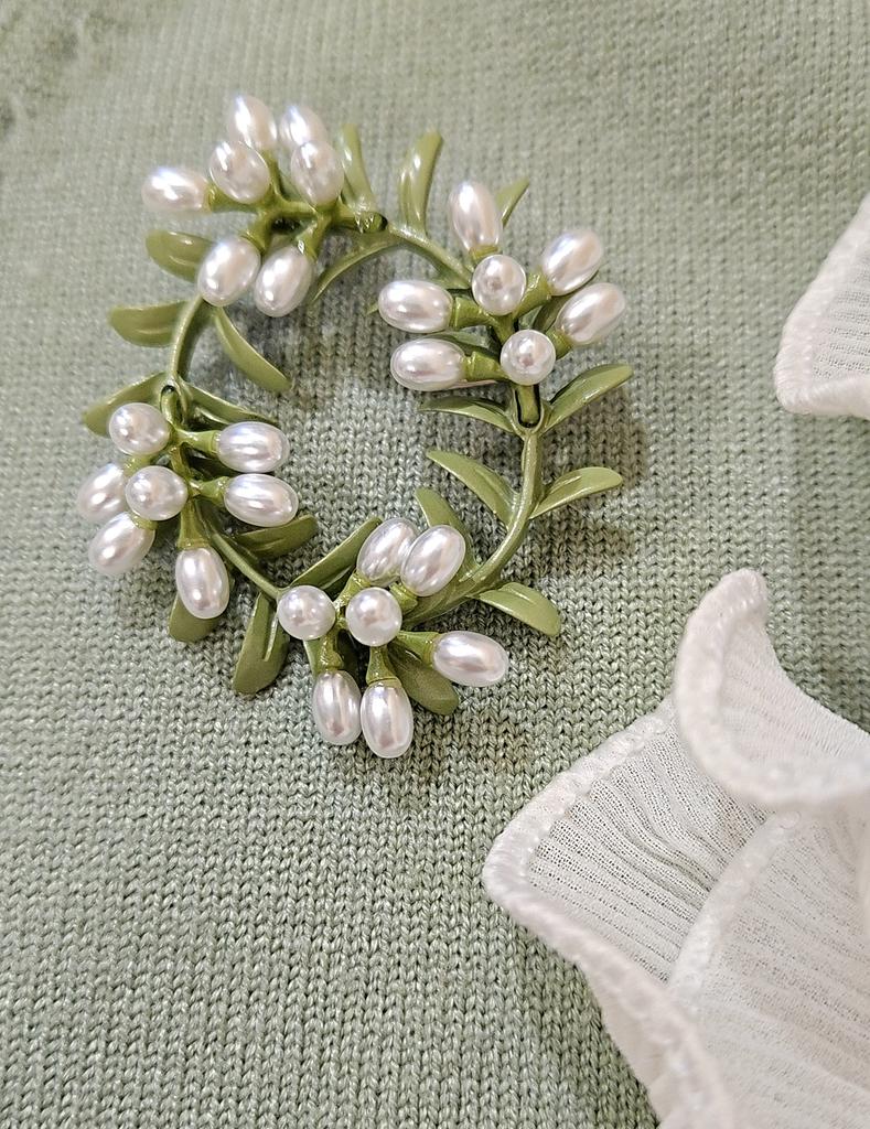 Delicate Green Enamel Cane Vine Brooches For Women Retro Pearl Wreath Casual Weddings Brooch Pins Gifts