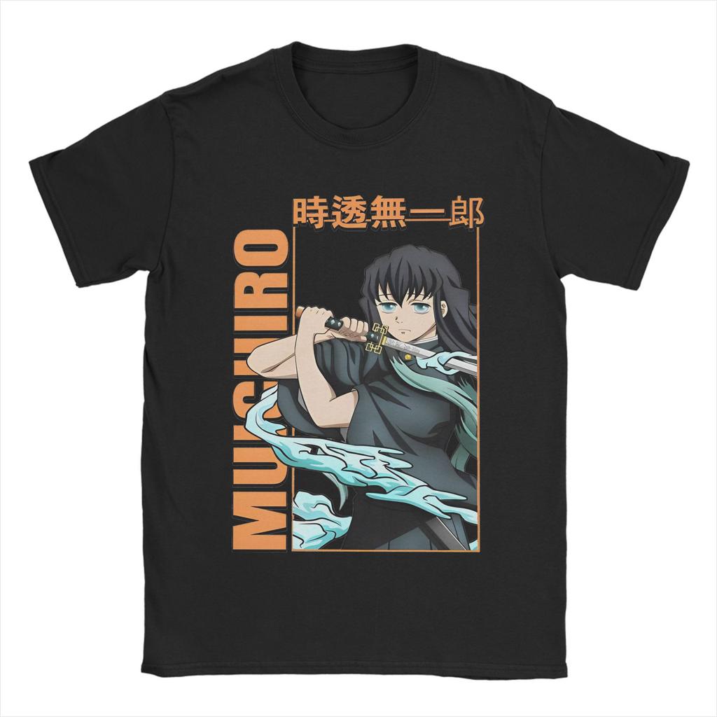 Muichiro Tokito Tshirt Men Cotton Top Tee Novelty Anime Demon Slayer Crewneck Short Sleeve