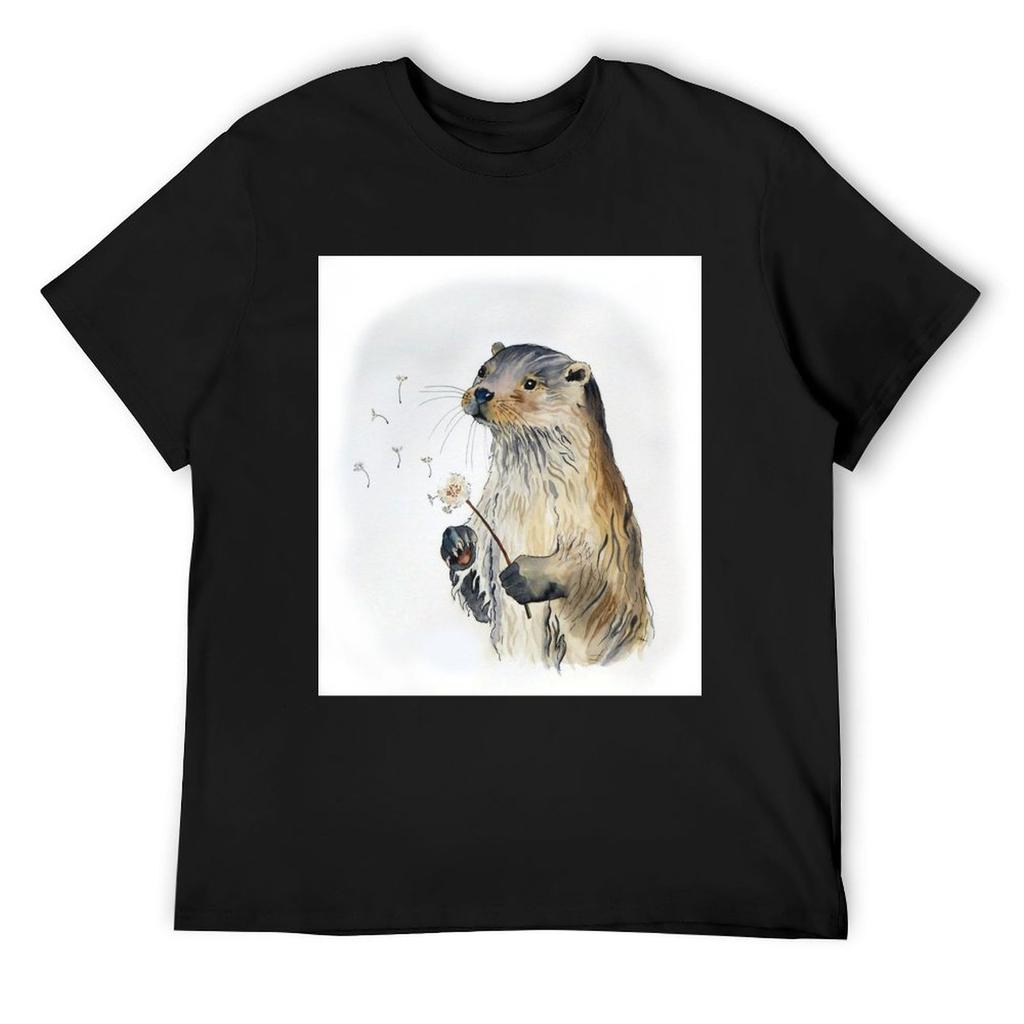 Wishing Otter T-Shirt Anime Clothes Customs Design Your Own Oversizeds T Shirts for Men Cotton