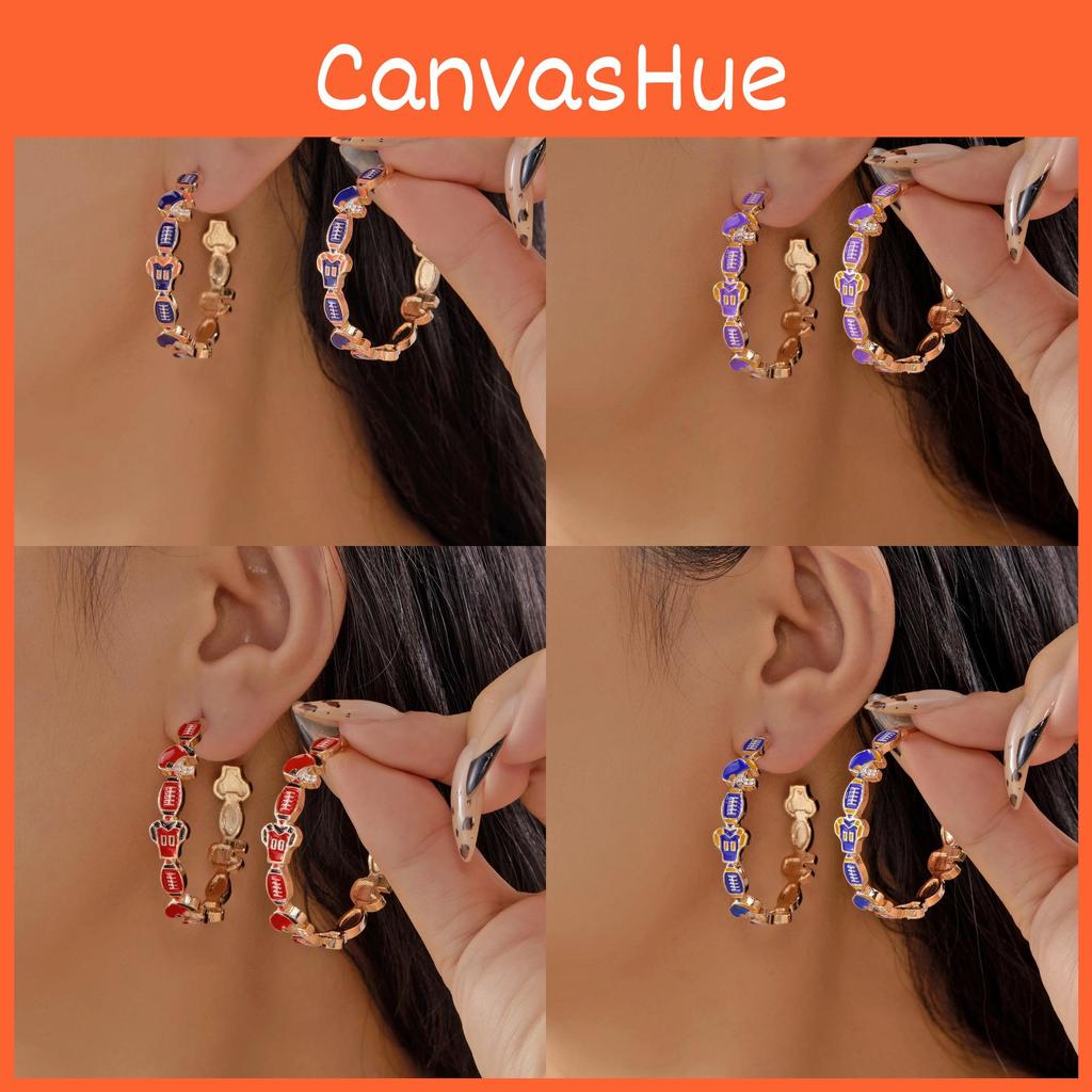 Sports Fan Football Volleyball Geometric Enamel Earrings For Women