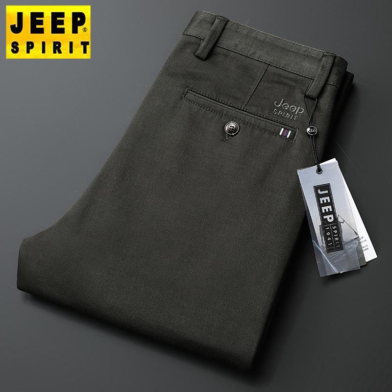 Men's Autumn/Winter Casual Gray Stretch Cotton Pants, Straight-Leg, Loose-Fit, Mid-Rise, Solid Color, Durable, Military Green J856A.